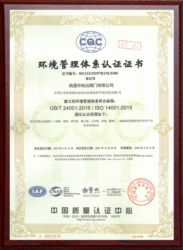 環(huán)境管理體系認證證書(shū)
