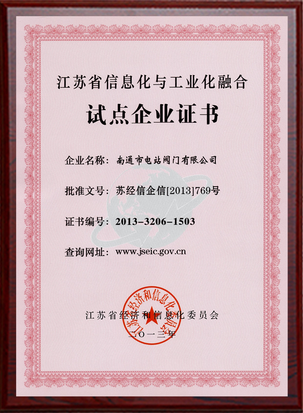 江蘇省信息化與工業(yè)化融合試點(diǎn)企業(yè)